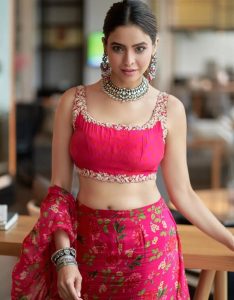 برتھ ڈے گرل آمنہ شریف کیوٹ، بولڈ اور گلیمرس بھی لگ رہی ہیں۔ آپ کسی گلابی شیڈ کا لہنگا کسی بھی فنکشن میں ٹرائی سکتے ہیں۔ اس لک کے لیے اپنے بال باندھ لیں۔ ایک بھاری نیک پیس اور بالیاں پہنیں۔ چولی یا بلاؤز کو پیچھے سے بالکل اسی طرح بنائیں۔