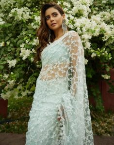 اگر آپ ساڑھی پہننا پسند کرتے ہیں تو اس بار نیٹ ساڑھی پہنیں، جس پر بین دھاگے کا کام ہو۔ اس کو اسٹائلش بنانے کے لیے بالوں کو ہلکا کرل کریں۔ بھاری میچنگ بالیاں پہنیں اور بس مسکرا دیں۔