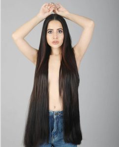 تصویر میں دیکھا جاسکتا ہے کہ عرفی پوری طرح سے ٹاپ لیس نظر آرہی ہیں ۔ وہیں انہوں نے اپنے لمبے بالوں سے خود کو فرنٹ سے چھپا رکھا ہے ۔ تاہم انہوں نے ڈینم کی جینس پہن رکھی ہے ۔
