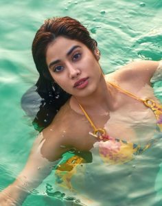 اداکارہ جھانوی کپور پرنٹیڈ بکنی میں پانی کے اندر پوز دیتی آئیں نظر