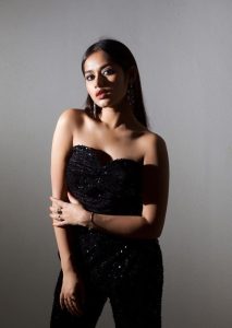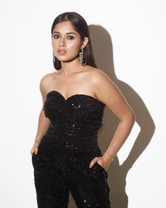 تازہ تصاویر میں جنت زبیر نے ایک ڈیپ نیک سلیو لیس سوٹ پینٹ پہن رکھا ہے ۔ اس میں ان کے بال کھلے ہوئے ہیں ۔