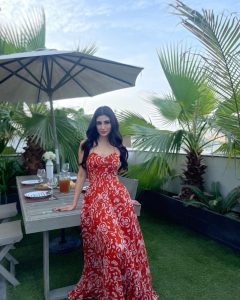 اداکارہ مونی رائے نے پھر بکھیرے اپنی اداوں کے جلوے، پرنٹیڈ گاون میں دئے ایسے پوز، تصاویر وائرل