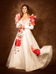 فلورل ڈیزائن کے وہائٹ کلر کے ڈیزائنر گاون میں اداکارہ کا انداز کمال کا ہے، جس کو نظر انداز نہیں کیا جاسکتا ہے ۔