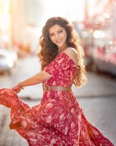 روبینہ دلیک کو ان تصویروں میں ریڈ کلر کی پرنٹیڈ فرل ڈریس میں دیکھا جاسکتا ہے ۔ اس میں روبینہ کافی خوبصورت لگ رہی ہیں ۔