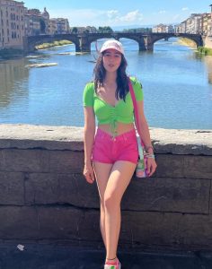 تیسری تصویر میں بھی سارا گرین ٹاپ اور پنک شارٹس میں تنہا ہی پوز دے رہی ہیں ۔