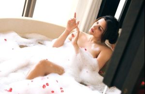 تصاویر میں اداکارہ شمع سکندر باتھ ٹپ میں لیٹی ہوئی نظر آرہی ہیں اور ان کے جسم پر صابن کا جھاگ نظر آرہا ہے ۔
