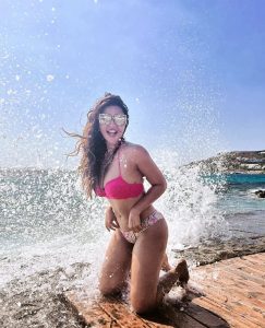 اس کے علاوہ شمع سکندر نے آرینج کلر کی بکنی میں سمندر کنارے کی تصاویر بھی شیئر کی ہیں ۔
