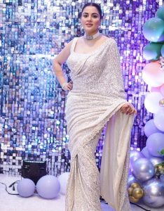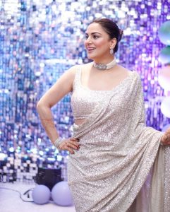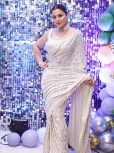 سلور کلر کی ساڑی میں شردھا آریہ کافی خوبصورت نظر آرہی ہیں ۔ انہوں نے اپنے اس لک کو کافی سادہ رکھا ہے ۔