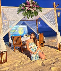 کسی تصویر میں سربھی چندنا سمندر کنارے پر ریت پر بیٹھی نظر آرہی ہیں وہیں کسی تصویر میں وہ تھائی ہائی سلٹ پرنٹیڈ ڈریس میں پوز دیتی دکھ رہی ہیں ۔