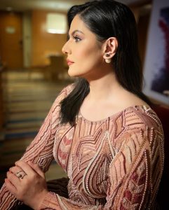 انہوں نے ایک خوبصورت ڈریس پہن رکھی ہے ۔ اس کے علاوہ انہیں کافی شاندار میک اپ بھی کررکھا ہے ۔