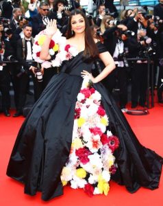 اداکارہ ایشوریہ اس مرتبہ کالے رنگ کے گاون میں رنگ برنگے پھولوں سے سچی ڈریس پہن کر جیسے ہی ریڈ کارپیٹ پر اتریں تو لوگوں کی نگاہیں ان سے ہٹانا مشکل ہوگیا ۔