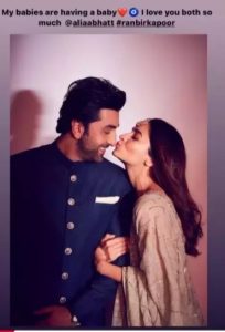ردھما کپور نے انسٹاگرام اسٹوری پر عالیہ اور رنبیر کی پیاری سے تصویر شیئر کرتے ہوئے اس کے کیپشن میں لکھا : میرے بے بی کا اپنا بے بی آنے والا ہے ۔ تم دونوں سے بہت پیار کرتی ہوں ۔