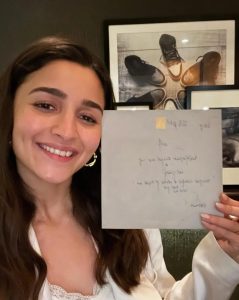 دوسری تصویر میں عالیہ بھٹ ہاتھ میں ایک لیٹر لئے ہوئے نظر آرہی ہیں۔