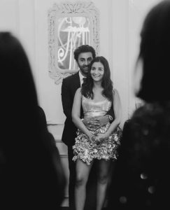 اس تصویر میں عالیہ اور رنبیر ویسٹرن آوٹ فٹ میں ہیں ، جو ڈانس فلور پر جانے کیلئے تیار ہیں ۔ عالیہ بھٹ کی یہ تصاویر سوشل میڈیا پر جم کر وائرل ہورہی ہیں ۔