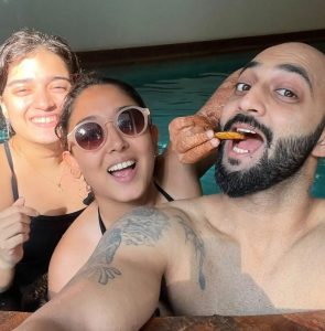 آئرہ خان نے بلیک اینڈ وائٹ کلر کا سوئم سوٹ پہن رکھا ہے جب کہ دوسری تصویر میں وہ اپنے دوست کو فرنچ فرائی کھلاتے ہوئے نظر آ رہی ہیں۔ ان کی ان تصاویر پر فینس بھی جم کر کمنٹس کر رہے ہیں ۔