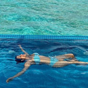 اداکارہ نیلے سمندر میں اسی طرح کی میچ بکنی پہنے نظر آرہی ہیں۔ اس طرح کے آؤٹ فٹ میں دیکھ کر مداح کمنٹس میں اسموکنگ ہاٹ لکھ رہے ہیں۔