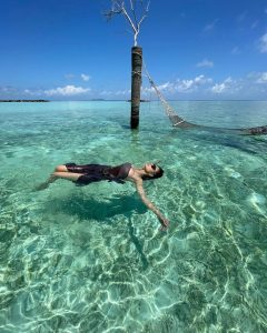 اس سے قبل مونی رائے نے سیاہ بکنی مونوکونی میں تصاویر شیئر کی تھیں اور ایک لمبا نوٹ لکھا۔ ان تصاویر میں وہ سمندر کے پانی میں مستی کرتی نظر آ رہی ہیں۔