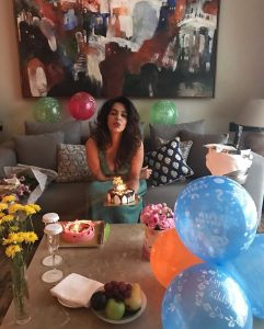 ملکہ شیراوت کے برتھ ڈے سلیبریشن کی تصاویر دیر رات کی ہیں ۔ ان تصاویر میں اداکارہ کاوچ پر بیٹھی ہوئی ہیں اور کیک کاٹ رہی ہیں ۔
