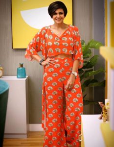 مندرا بیدی کی یہ تھری پیس ڈریس گرمیوں کے لیے کافی کول ہے۔ آپ کسی بھی موقع کے لیے اس آرام دہ اور پرسکون پالازو ڈریس کو ٹرائی سکتے ہیں۔