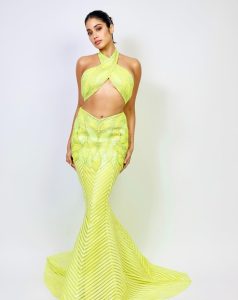 نیان گرین کلر کے کٹ آوٹ والے ڈریس میں جھانوی کافی خوبصوت اور بولڈ لگ رہی ہیں ۔