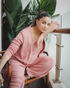 لائٹ پنک کلر کے ٹریک سوٹ جیسے آوٹ فٹ میں عالیہ نے اپنے بڑھتے پیٹ کی کچھ جھلک دکھائی ہیں ۔ ان تصویروں میں عالیہ پیاری سی اسمائل دے رہی ہیں ۔