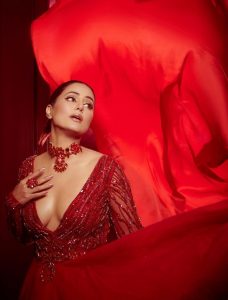 حنا خان نے ہاٹ ریڈ ڈریس میں دکھایا گلیمرس انداز