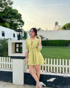 اداکارہ جنت زبیر نے حال ہی میں اپنے انسٹاگرام اکاونٹ پر کچھ تصاویر شیئر کی ہیں، جس میں وہ پیلے رنگ کی شارٹ ڈریس میں نظر آرہی ہیں ۔