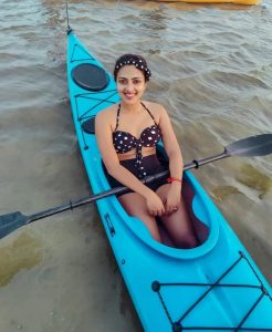 سوئم سوٹ میں کشتی چلاتی ہوئی امالا پال کافی جاذب نظر لگ رہی ہیں ۔
