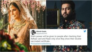 کیٹرینہ کیف اور وکی کوشل کی شادی میں شرکت کرنے والے مہمانوں کے لئے کئی ہدایتیں جاری کی گئیں ہیں۔ ہدایت دی گئی ہے کہ سبھی مہمانوں کو کوویڈ وبا کو دھیان میں رکھتے ہوئے ویکسین کی دونوں ڈوز لگی ہونی چاہیے اور جن مہمانوں نے ویکسین نہیں لگوائی ہے اُنہیں آر ٹی پی سی آر ٹسٹ کروانا لازمی ہے۔