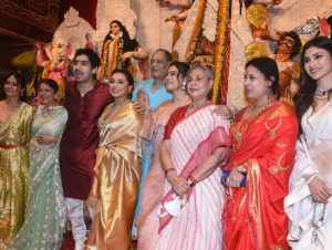 رانی مکھرجی، کاجول، تنیشا، تنوجا، ایان مکھرجی، مونی رائے اور جیا بچن درگا پوجا کے لئے پہنچے، جہاں سبھی نے ساتھ پوز دیئے۔