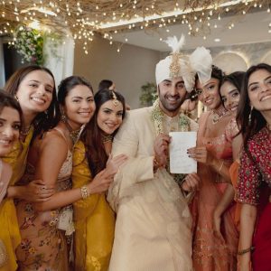 وہیں ایک تصویر میں رنبیر کپور کو ہاتھ میں ایک نوٹ لئے ہوئے دیکھا جاسکتا ہے، جس میں لکھا ہے- ’میں رنبیر کپور، عالیہ کا شوہر، میں سبھی برائیڈمیڈس سے پرتگیہ کرتی ہوں کہ..
