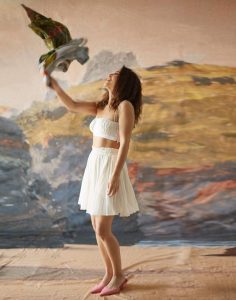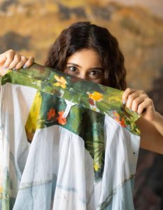 شویتا نے سفید ڈریس کے اوپر ایک کلرفل شرٹ پہن رکھا ہے ، جس میں وہ الگ الگ پوز میں نظر آرہی ہیں ۔