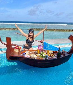 اس کے علاوہ اونیت کور کے پاس سوئمنگ پول میں ایک تیرتی ہوئی ناشتے کی ٹیبل بھی ہے، جس میں ناشتے کی بہت سی چیزیں رکھی گئی ہیں۔پہلی تصویر میں اونیت کور وی کا پوز بناتی ہوئی نظر آ رہی ہیں۔جبکہ دوسری تصویر میں اونیت کور دونوں ہاتھ کو اوپر اٹھا کر ناشتہ دیکھ کر خوش ہوتی نظر آرہی ہیں۔جبکہ تیسری تصویر میں وہ کیمرے کی طرف دیکھتی ہوئی نظر آرہی ہے۔تصویریں شیئر کرتے ہوئے اونیت کور نے لکھا ہے، ‘بیڈ پر بریک فاسٹ، نہیں بریک فاسٹ پول میں’۔ اس کے ساتھ انہون نے ہنسنے والی اور ہارٹ ایموجی شیئر کی ہے۔اس کے علاوہ انہوں نے مالدیپ 2022 بریک فاسٹ ہیش ٹیگ بھی استعمال کیا ہے۔