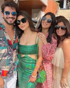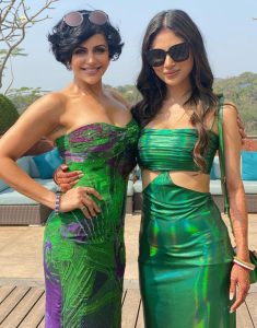 مونی رائے کی اس تصاویر کو ان کی خاص دوست مندرا بیدی (Mandira Bedi) نے اپنے انسٹا گرام اکاونٹ پر شیئر کی ہیں۔ اس تصویر میں مندرا بیدی اور مونی رائے دونوں ساتھ نظر آرہی ہیں۔ مندرا بیدی نے اس تصویر کو شیئر کرتے ہوئے کیپشن میں لکھا ہے، ’گرے گرین‘۔ تصویر میں مونی رائے اور مندرا بیدی دونوں ہی ویسٹرن گرین ڈریس میں نظر آرہی ہیں۔ وہیں، مونی رائے کے ہاتھوں میں شادی والی مہندی لگی ہوئی نظر آرہی ہے۔ تو آئیے، آپ بھی دیکھئے شادی کے بعد مونی رائے کی پہلی تصویر۔