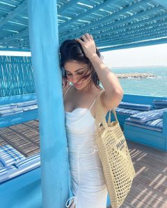 کچھ تصاویر میں اداکارہ سمندر کنارے بنے پوائنٹ پر پوز دے رہی ہیں تو وہیں کچھ تصاویر میں وہ بوٹ پر سوار پوکر خوبصورت پوز دیتی نظر آرہی ہیں ۔