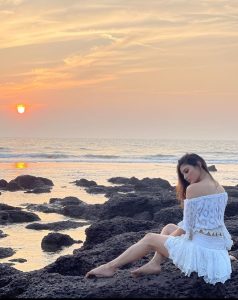 مونی رائے نے جو تصاویر شیئر کی ہیں، اس میں وہ ایک سمندر پر بیٹھی ہیں اور اپنی دلکش ادائیں دکھا رہی ہیں۔