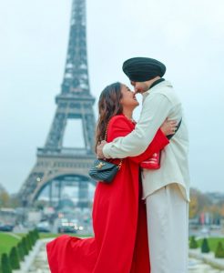 نیہا ککڑ اورروہن پریت ایفل ٹاور کےسامنےبنائیں تصویریں
