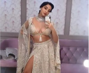 نورا فتیحی اپنی اداوں سے نیٹجنس کو دیوانہ بنا رہی ہیں۔ انہیں تصویر میں خوبصورت سفید رنگ کی انڈین ڈریس پہنے ہوئے دیکھا جاسکتا ہے۔
