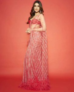 ٹرانسپیرنٹ ساڑی اور آف شولڈر بلاوز میں اداکارہ کیرتی سینن کافی خوبصورت لگ رہی ہیں ۔