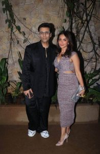 کرن جوہر اوور سائزڈ کوٹ پینٹ میں اس پارٹی میں شامل ہوئے ۔ بلیک آوٹ فٹ میں کرن اسٹائلش لگ رہے تھے ۔