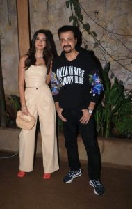 سنجے کپور بیٹی شنایا کپور کے ساتھ یہاں پہنچے ۔شنایا کپور آف وہائٹ آوٹ فٹ میں پارٹی میں شامل ہوئیں ۔