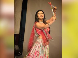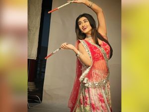اداکارہ نے تصاویر کو پوسٹ کرتے ہوئے کیپشن دیا، Keep calm and play Dandiya’ ’یعنی امن وامان برقرار رکھیں اور ڈانڈیا کھیلیں۔ HAPPY NAVRATRI’