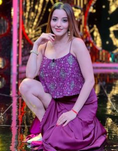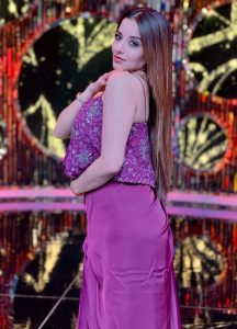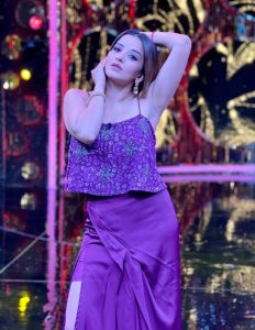 مونالیسا کی تازہ تصاویر پرپل کلر کی ڈریس میں ہیں۔ تصاویر میں دیکھ سکتے ہیں کہ انہوں نے پرپل کلر کے ٹاپ کے ساتھ میچنگ تھائی ہائی سلٹ گاؤن پہن رکھا ہے۔
