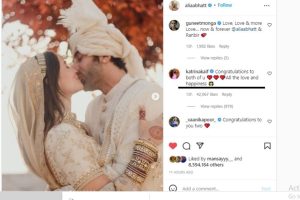 وہیں کٹرینہ کیف نے بھی عالیہ کے اس پوسٹ پر ردعمل کا اظہار کیا ہے۔ شادی کی مبارکباد دیتے ہوئے انھوں نے لکھا- ‘آپ دونوں کو شادی کی مبارکباد، ڈھیروں پیار اور خوشیاں۔’ اس کے ساتھ انھوں نے تین ہارٹ ایموجیز بھی شیئر کیے ہیں۔