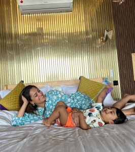 سوشل میڈیا پر سامنے آئی تصاویر میں دیکھنے کو مل رہا ہے کہ انیتا ہسنندانی (Anita Hassanandani Latest Photos) کو ان کے بیٹے آرو کے ساتھ بیڈ روم میں ہیں اور دونوں مستی کے موڈ میں نظر آرہے ہیں۔ اداکارہ کے بیٹے آرو کے چہرے پر معصوم سی مسکراہٹ نظر آرہی ہے اور انیتا ہسنندانی بھی مسکرا رہی ہیں۔