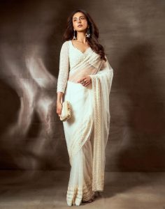 سفید ساڑھی میں انتہائی خوبصورت لگ رہی ہیں رکول پریت، اداکارہ کی شوخ اداؤں پر مداح ہوئے فدا