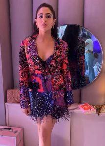 سیف علی خان کی بیٹی سارا علی خان نے ملٹی کلر شارٹ ڈریس میں دکھایا انتہائی بولڈ انداز
