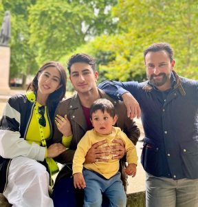 سارہ علی خان کے ذریعہ شیئر کی گئی تصاویر میں وہ اپنے والد سیف علی خان اور بھائی ابراہیم خان-جیہہ کے ساتھ لندن کے ایک پارک میں پوز دیتی ہوئی نظر آرہی ہیں۔