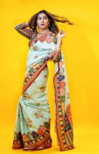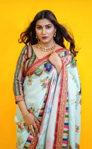 ان تصاویر میں سپنا چودھری فلورل ساڑی پہنے ٹریڈیشنل لک میں قہر ڈھا رہی ہیں ۔