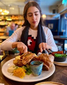 سارہ علی خان برطانیہ کے کسی ریستوراں میں لذیذ ڈش کا لطف اٹھاتی ہوئی نظر آرہی ہیں۔